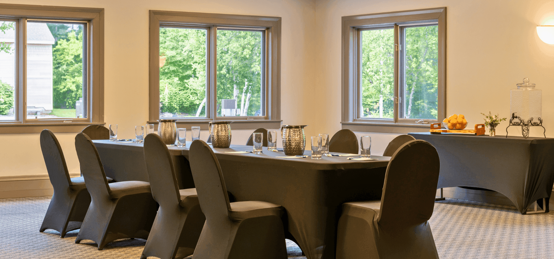Located off the main drive with its own private entrance. This intimate meeting space has plenty of natural light, and serves smaller groups well.